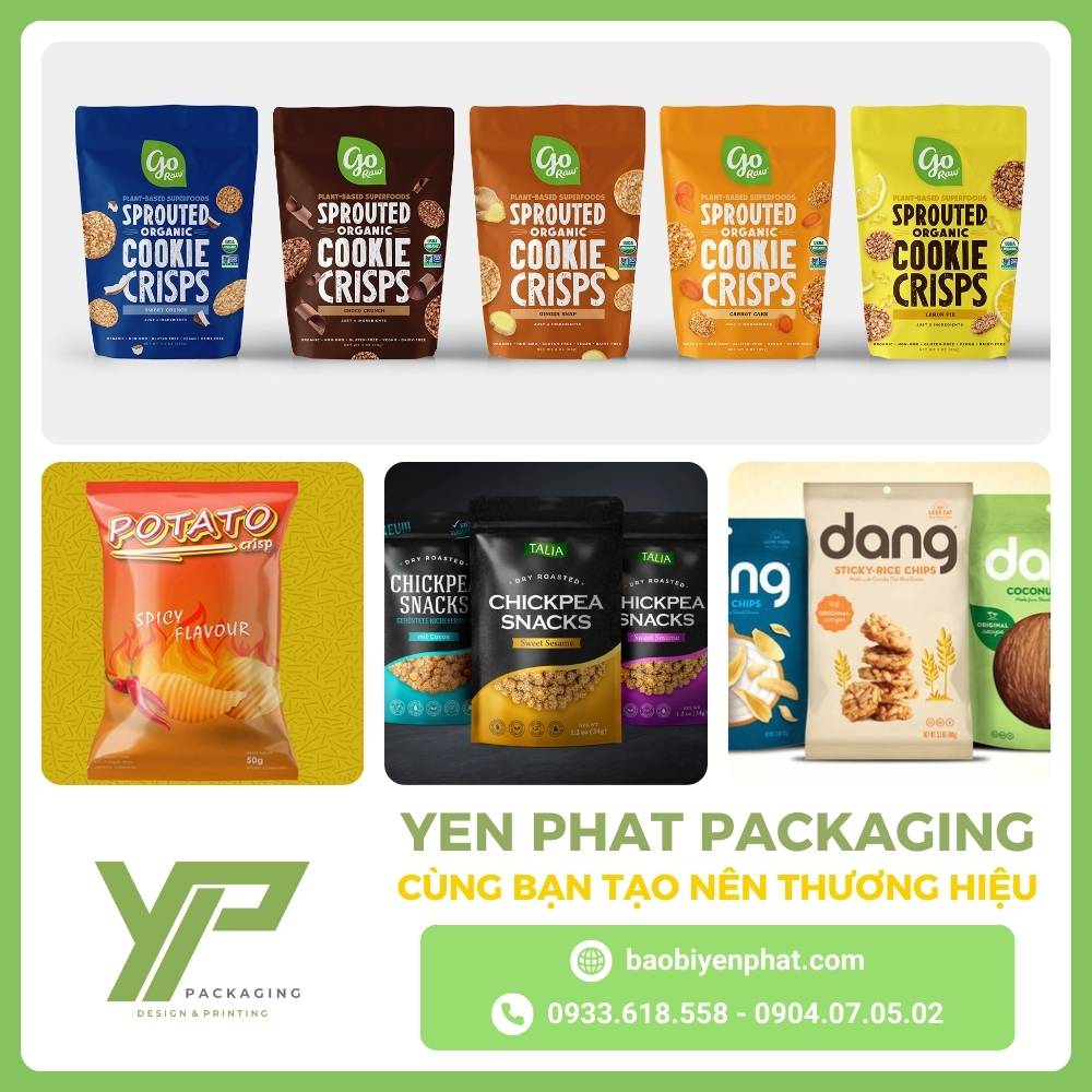 Để đáp ứng nhu cầu này, bao bì snack không chỉ cần đảm bảo việc bảo vệ chất lượng sản phẩm mà còn phải mang lại sự tiện lợi khi sử dụng. Ngoài ra, không chỉ dừng lại ở 2 mục đích trên, mà còn phải đáp ứng các tiêu chí về tính thẩm mỹ, câu chuyện thương hiệu, màu sắc bắt trend, chịu được va chạm khi vận chuyển đường dài,... Do đó, việc in ấn bắt mắt, sinh động trên bao bì snack cũng đóng vai trò quan trọng trong việc giúp doanh nghiệp quảng bá thương hiệu một cách hiệu quả và trực tiếp.