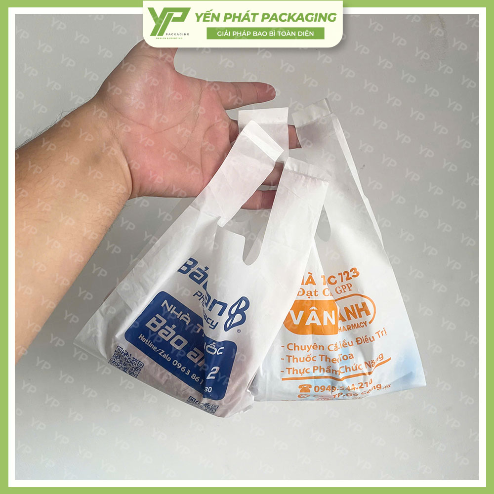 - Túi nilon 2 quai: Dùng cho siêu thị mini, cửa hàng tạp hóa.